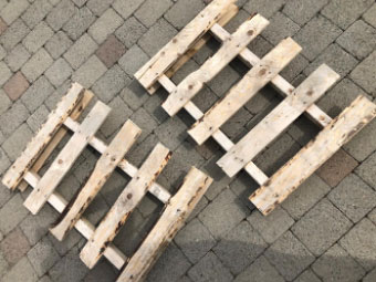 Step 3: At this point you can sand down your wood, but this is optional. Once the bottom structure is sturdy, add one plank of wood on top, screwing as you go. Next, cut the other plank in half and attach to the two sides of the bar.